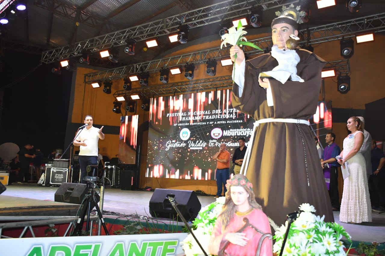 Saludaron a los presentes e invitaron a las autoridades, el gobernador Gustavo Valdés; el intendente de Mburucyá, Pablo Gustavino; y al presidente de la Comisión Organizadora, Horacio Naessens, a subir al escenario para dirigir unas palabras. Al finalizar esta parte, el Ballet Municipal Mainumby, tuvo a su cargo el cuadro artístico de apertura con un recorrido por las bailantas chamameceras.