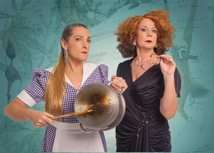 Dos mujeres inmersas en contar una historia de prejuicios y apariencias. Dos prodigios histriónicos en escena, durante 60 minutos. Carolina Alberdi al piano y Gimena Riestra en la voz.