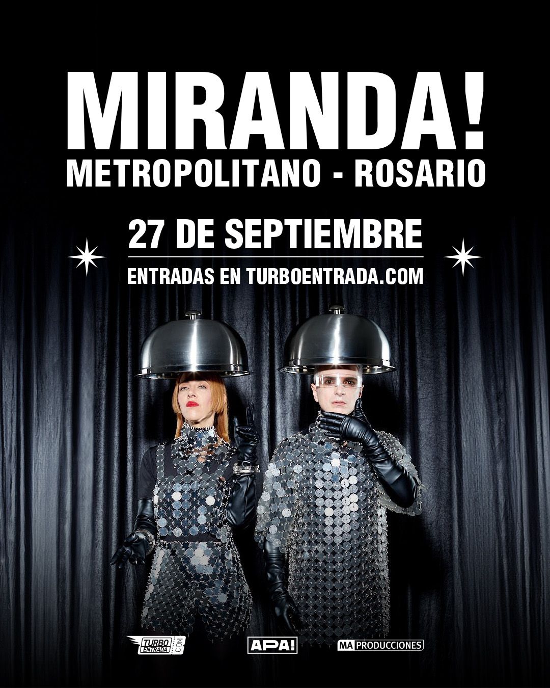 Ale Sergi y Juliana Gattas regalarán una noche maravillosa en la ciudad de la mano del Nuevo Hotel Miranda! el Sábado 27 de septiembre en el Metropolitano, Junín 501, Rosario, las entradas se adquieren a traves de turboentrada.com y en la Boletería de Metropolitanom.
