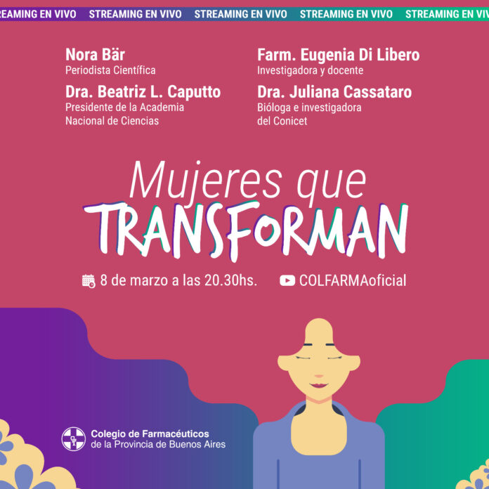 En el marco de la conmemoración del Día Internacional de la Mujer, el Colegio de Farmacéuticos de la provincia realizará este miércoles a las 2030, un streaming en vivo que lleva como título “Mujeres que transforman”.