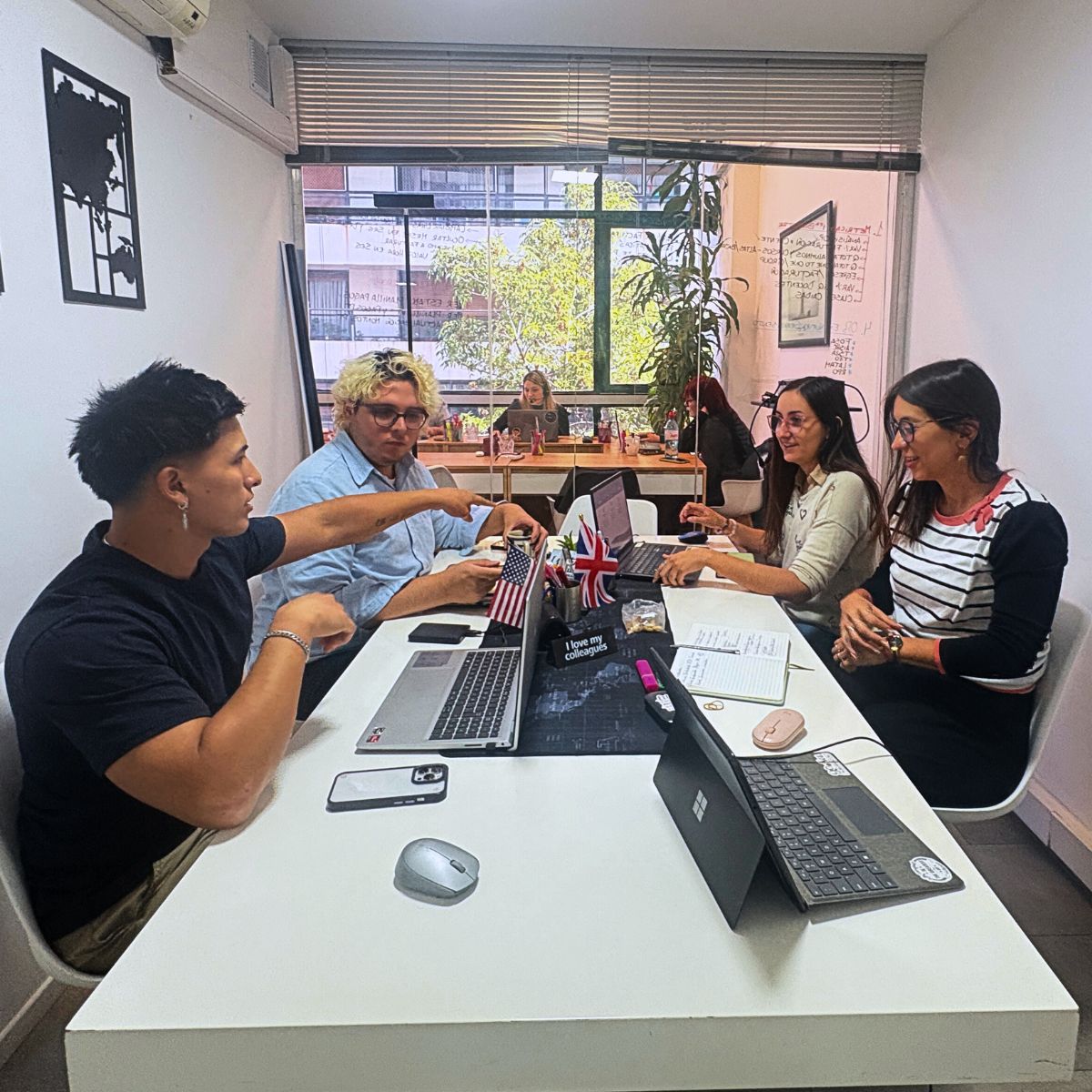 Luego llegó el desafío de trabajar con empresas. El primer cliente fue Duty Free Shop en Aeropuertos Argentina 2000, tras una compulsa que Natalia recuerda con humor: una carpeta azul impresa a chorro de tinta, un PowerPoint sencillo y mucha convicción en un proyecto educativo que recién comenzaba. Lo que parecía imposible se convirtió en un gran salto: de un equipo pequeño pasaron a organizar clases para cientos de personas, con un plantel de profesores que creció en cuestión de días.