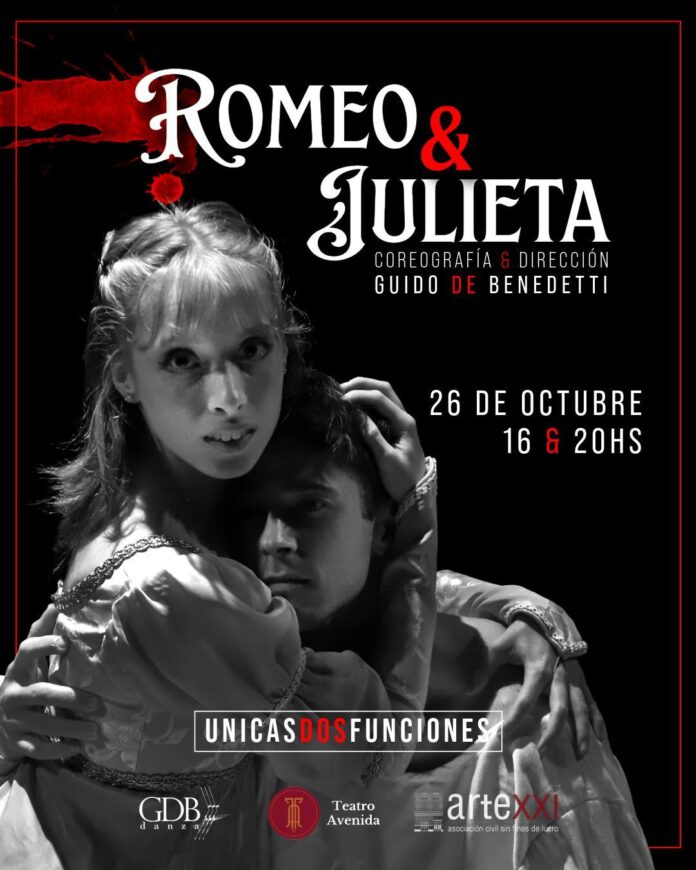 Tras el éxito obtenido con la presentación del ballet “Cenicienta, Un Cuento que no es Cuento” La Compañía GDB Danza dirigida por el Mtro. Guido De Benedetti continúa la temporada 2024 con su versión estreno del ballet “Romeo y Julieta”, el 26 de Octubre en el Teatro Avenida, Av. de Mayo 1222, a las 16 hs y a las 20 hs.