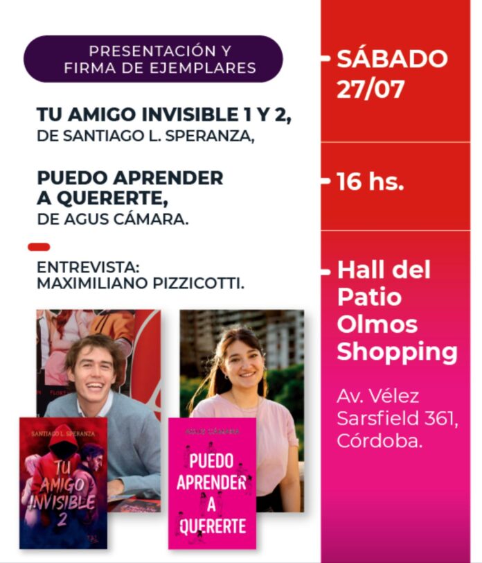 Presentarán sus libros y firmarán ejemplares El sábado 27 de julio a las 16 horas en Shopping Patio Olmos, en el hall (Avenida Vélez Sarsfield esq. Bv. San Juan).