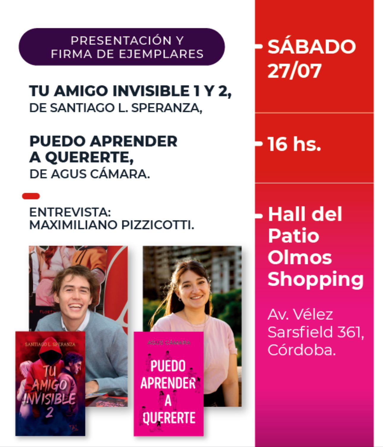 Santiago Speranza y Agus Cámara presentan sus libros Tu Amigo Invisible y Puedo Aprender a Quererte.
