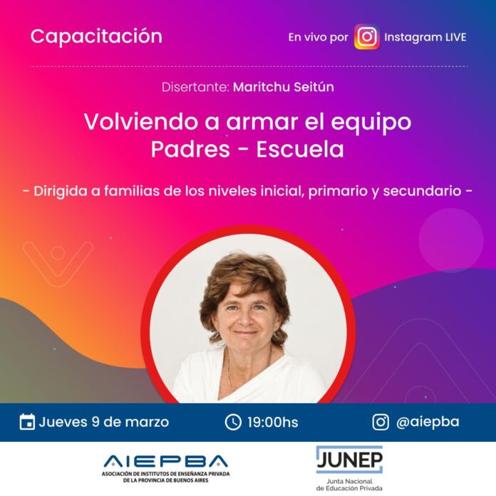 Organizada e impulsada por AIEPBA y JUNEP, se realizará este jueves a las 19 una capacitación dirigida a las familias de toda la comunidad educativa que tiene como título “Volviendo a armar el equipo Padres-escuela”.