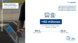 Desde el lanzamiento del sistema de pagos abiertos en transporte público en diciembre de 2024 hasta septiembre de 2025, ya se realizaron 60 millones de pagos con tarjetas en la adquirencia Payway. De ellos, el 69,5% fueron con tarjeta de débito y el 30,5% restante con tarjeta de crédito. Y, del total de los pagos para viajar, el 30% se hicieron con celulares y relojes con tecnología NFC.