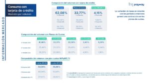 En el consumo con tarjeta de crédito se desprende que la variación de tasas en relación con los períodos anteriores, generó una contracción en los planes de cuotas.