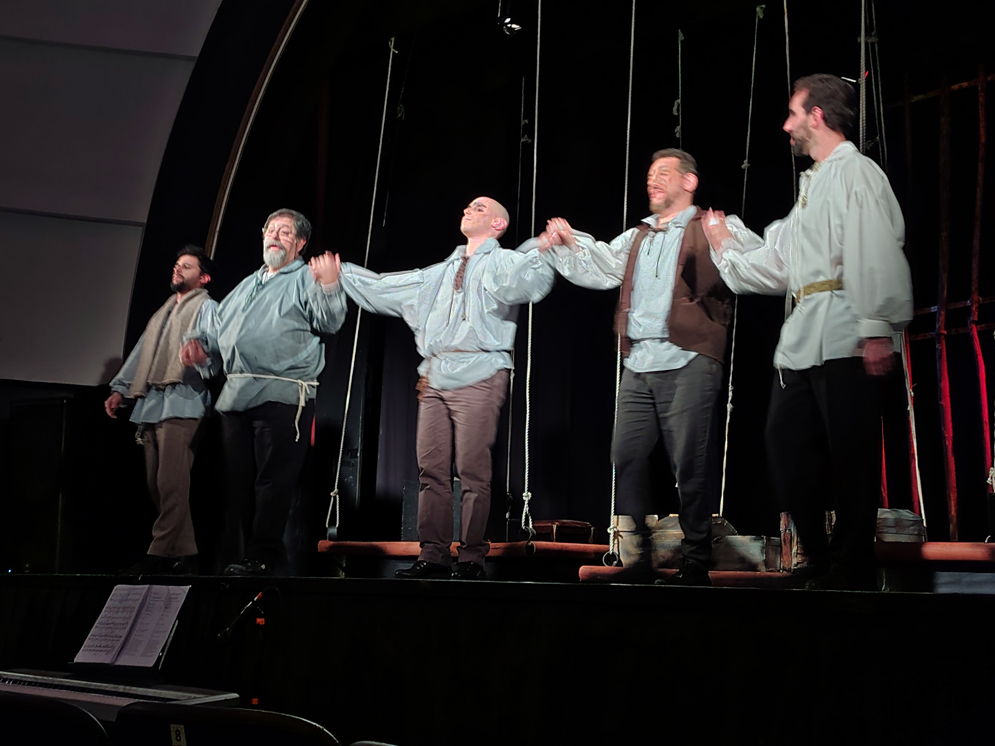 A decir verdad, los cinco protagonistas pusieron gran esmero en una aceptable pronunciación del ruso. Estuvieron sostenidos, acompañados y dirigidos musicalmente por Ezequiel Dalairac quien, desde el piano (ubicado debajo del escenario) apoyó, fraseó, subrayó e hizo notar los episodios con sumo talento.
