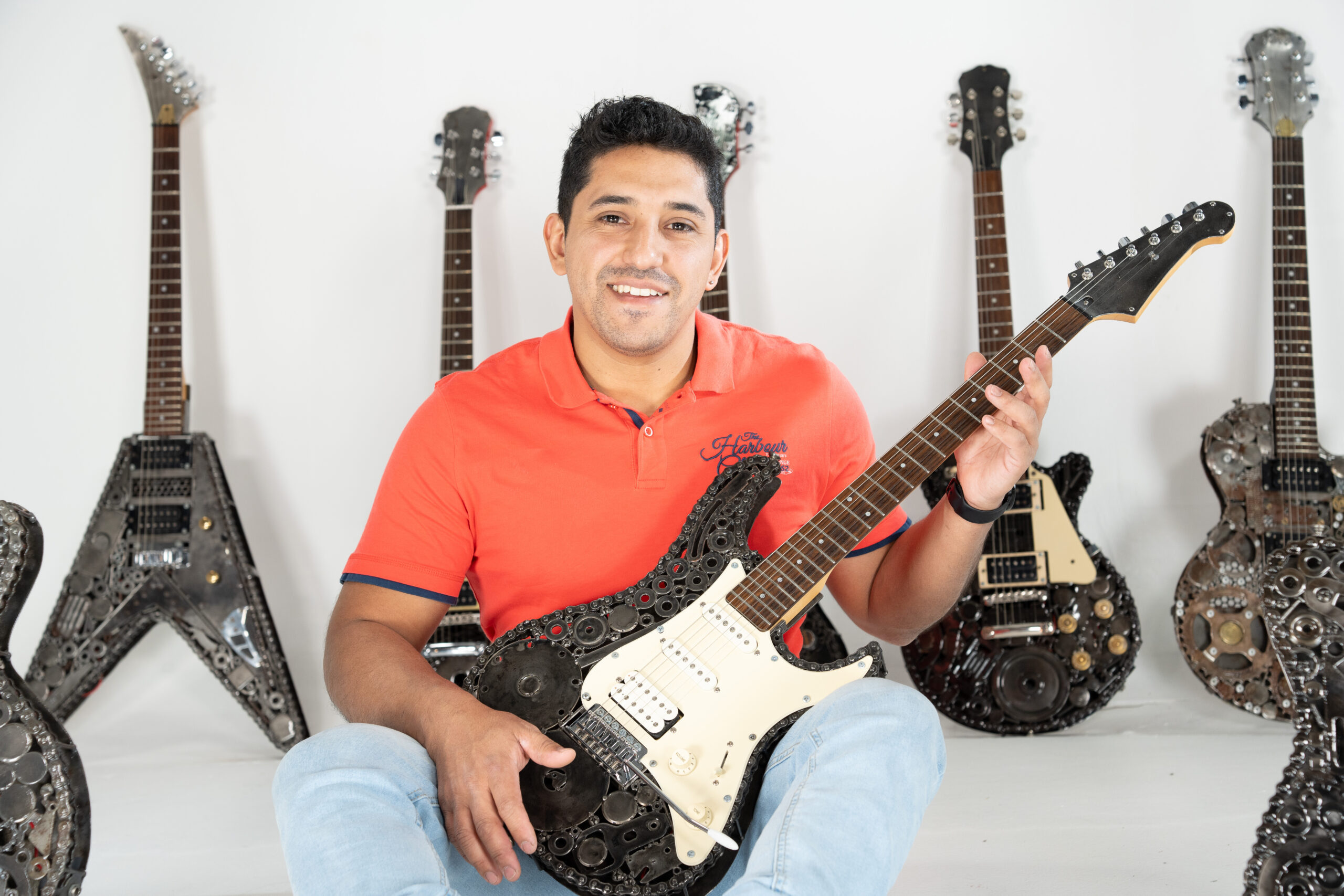 El ambiente se llenó de emoción, especialmente cuando el talentoso guitarrista “Chowy” Fernández, conocido por su trabajo con Cristian Castro y Ca7riel, empezó a tocar una de las guitarras únicas creadas por Lemos durante la recepción, demostrando así que las obras no son solo bellas esculturas realizadas en metal reciclado con partes de autos, relojes, monedas y cadenas de motos, sino que también son guitarras funcionales.