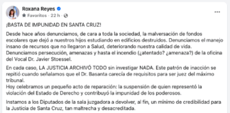 Roxana Reyes celebró la suspensión de Basanta: “Es un pequeño acto...