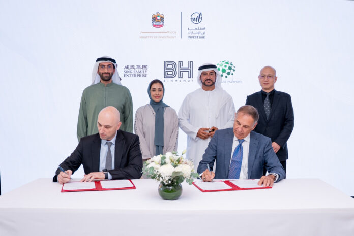 El acuerdo fue firmado en la sede del Ministerio de Inversiones por Mike Calise, director ejecutivo de Tellus Power y Marius Ciavola, director ejecutivo de Sing Family Enterprise Middle East. El evento contó con la presencia de Hessa Al Ghurair, subsecretaria adjunta en funciones del Ministerio de Inversión, Hamdan Zakaria Doleh, presidente del Centro de Innovación de China en Emiratos Árabes Unidos, Yansong Li, cofundador de Tellus Power Group, y Mohammad BinHendi, director ejecutivo de BinHendi Holding Group.
