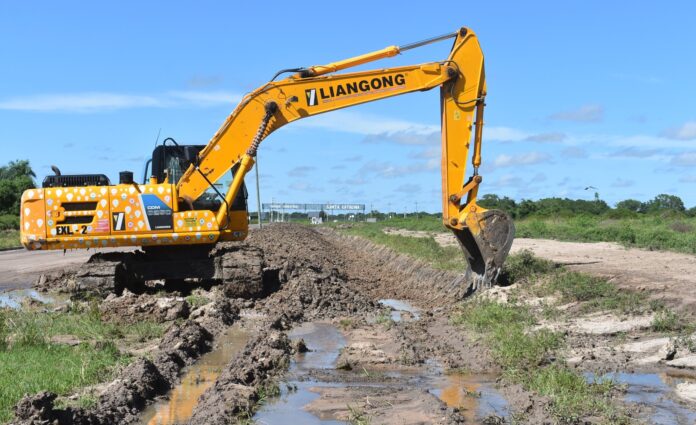 Asimismo maquinaria pesada se encuentra abocada a la profundización del canal que corre paralelo al acceso a la zona de El Perichón, mientras que también se trabaja en la construcción de un canal alterno en el acceso al Parque Industrial.