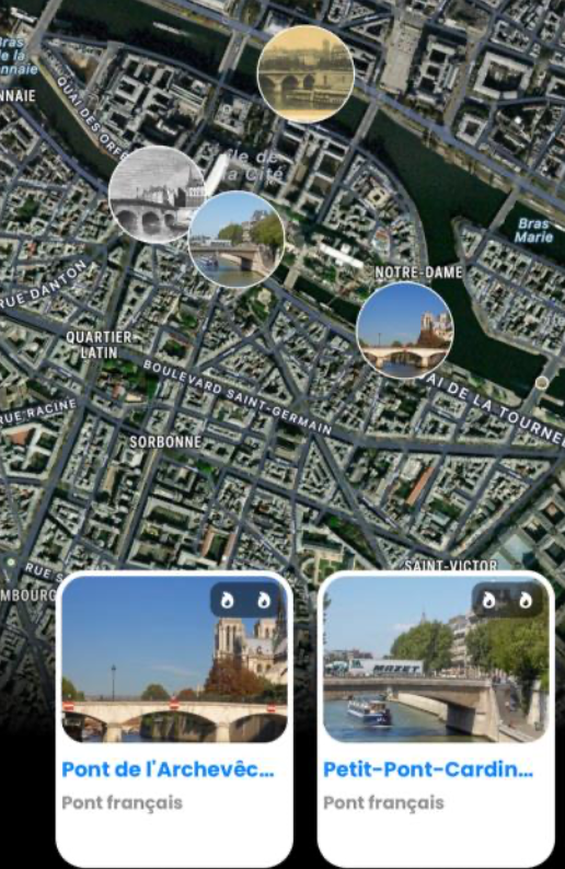 El contenido enriquecido de la aplicación permite que los usuarios la usen como una verdadera guía de viaje. Cuando un usuario hace clic en la burbuja o en el recuadro del lugar de interés, accede a una ficha detallada con su historia, anécdotas, información práctica, ubicación exacta y un enlace al sitio web. La información, sintetizada a través de un algoritmo, se actualiza diariamente.
