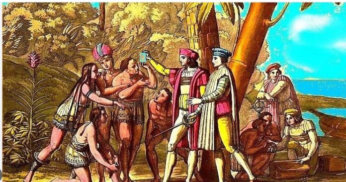 Vienen a decir que para el europeo esas baratijas no tenían prácticamente valor y sin embargo obtenía a cambio los pequeños adornos de oro que los nativos llevaban encima y que sí tenían mucho valor.
