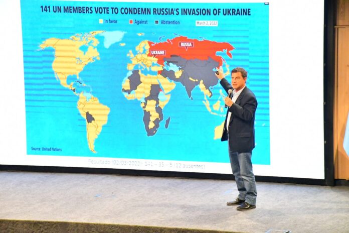 El gobernador Gustavo Valdés acompañó este viernes al politólogo con renombre internacional Andrés Malamud en el marco de conferencia donde se abordaron distintos escenarios políticos en la Argentina en el contexto de “Un mundo turbulento”.