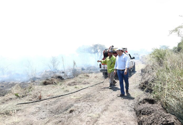 Tras sobrevolar distintos focos de incendios en la provincia, el gobernador de Corrientes, Gustavo Valdés arribó este jueves en la localidad de Curuzú Cuatiá, donde actualmente se extiende uno de los más importantes. Allí el mandatario aseguró que el Gobierno provincial pone a disposición todas sus áreas en coordinación con fuerzas locales para el combate al fuego. Es así que coordinó las tareas que realizan Bomberos Voluntarios, Policía de Corrientes, Brigadas Forestales, Defensa Civil, los Ministerios de Salud y de Desarrollo Social, y la DPEC, junto al aporte que realizan los municipios para sofocar las llamas.