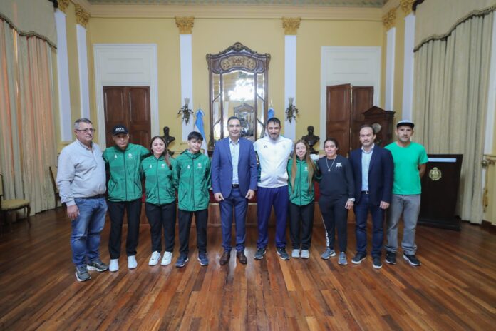 Por otro lado, también recibió a tres jóvenes correntinos que participaron de los campeonatos panamericano y sudamericano de levantamiento de pesas, Domingo Meza, Martina Giménez y Agustina Álvarez, quienes compitieron en Palmira, Colombia, donde lograron tanto una medalla de oro como una de bronce.