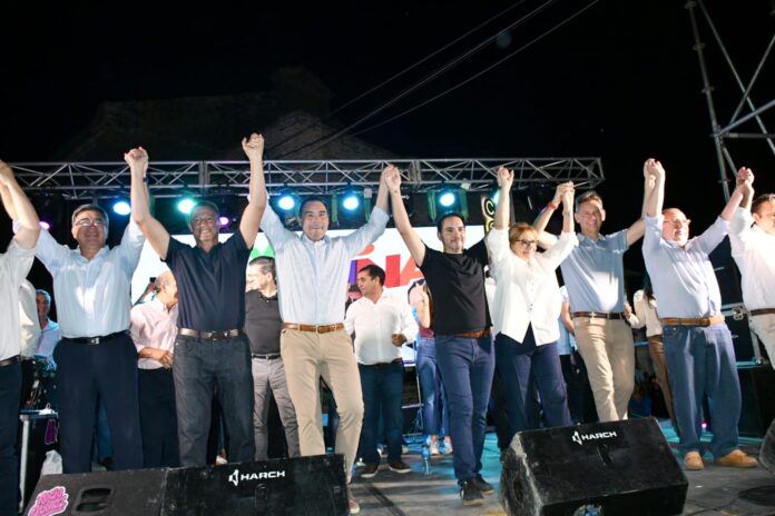 El acto de presentación de candidatos de la alianza Vamos Corrientes en Esquina, que convocó a la militancia de los partidos del oficialismo provincial, se realizó este viernes 3 en la intersección de Mitre y Lamela. Allí fueron presentadas las candidaturas de Arnoldo Rohner para intendente y Walter Vallone para viceintendente, en un evento que contó con la participación del actual gobernador y senador electo Gustavo Valdés, y Juan Pablo Valdés, actual intendente de Ituzaingó y gobernador electo. Además, la lista de Vamos Corrientes se mostró unida con la presencia de los candidatos a diputados nacionales Diógenes González, Práxedes López, y Carlos Hernández, como así también del actual y reelecto vicegobernador, Pedro Braillard Poccard, consolidando así el respaldo provincial al proyecto oficialista.