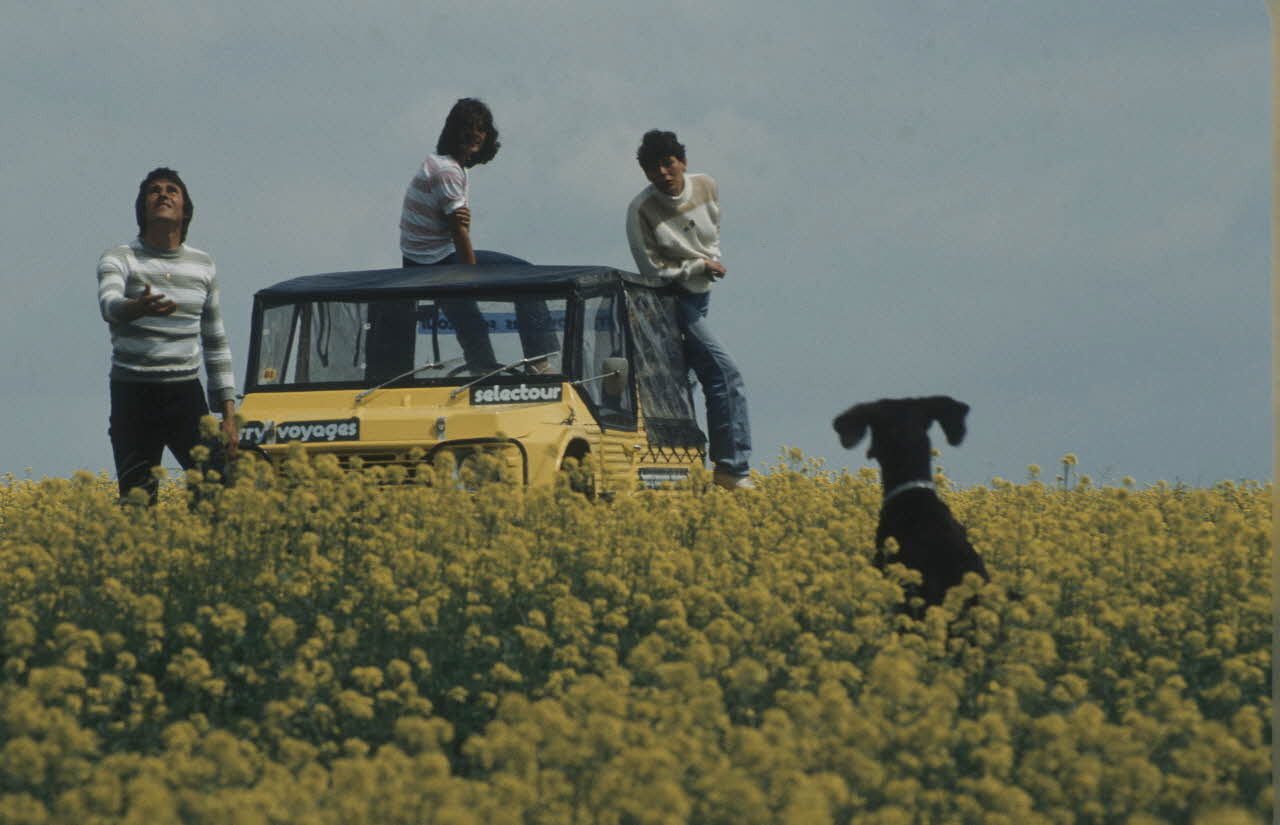 Cazadores, campistas, y amantes de la naturaleza, desde la playa hasta las altas montañas: todos quedaron cautivados por el encanto de este innovador vehículo, tan rápido gracias a su ligereza y capaz de viajar y resistir en cualquier terreno. Por ello, se eligió el nombre Méhari, tomado de una raza de dromedarios de carreras, especialmente robustos y resistentes. Al igual que el 2CV era conocido como el “caracol de hojalata”, el Méhari recibió el cariñoso apodo de “caracol de plástico”. Con presencia tanto en Saint-Tropez como en el centro de París, el Méhari se fabricó en casi 150.000 unidades durante aproximadamente veinte años: de 1968 a 1987, incluyendo los extraordinarios 4×4 que sirvieron al ejército francés, incluso en una versión “paracaídas”, y que desempeñaron el papel de “ambulancias rápidas” en el París-Dakar de 1980, donde demostraron una eficacia increíble, capaces de ir y venir entre las dunas con facilidad, sin atascarse en la arena.
