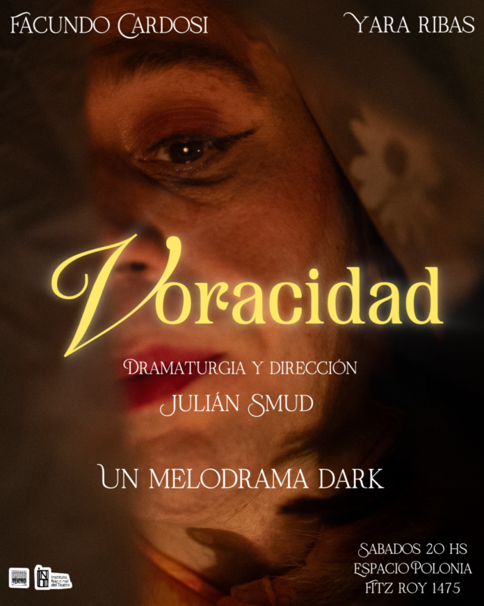 “Voracidad. Un melodrama oscuro ” se presenta los sábados de agosto y septiembre a las 20hs en Polonia Teatro (Fitz Roy 1475, CABA). Entrada general a $15000 (2 x $24.000) por Alternativa
